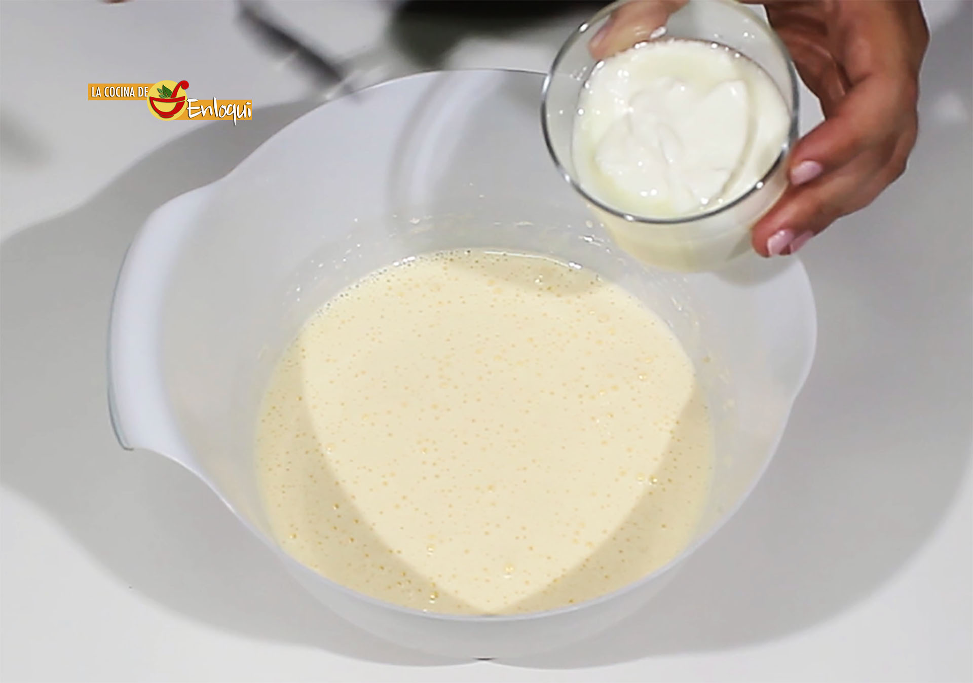 Ahora añade el aceite y el yogur. Sigue batiendo hasta que todos los ingredientes queden bien integrados.
