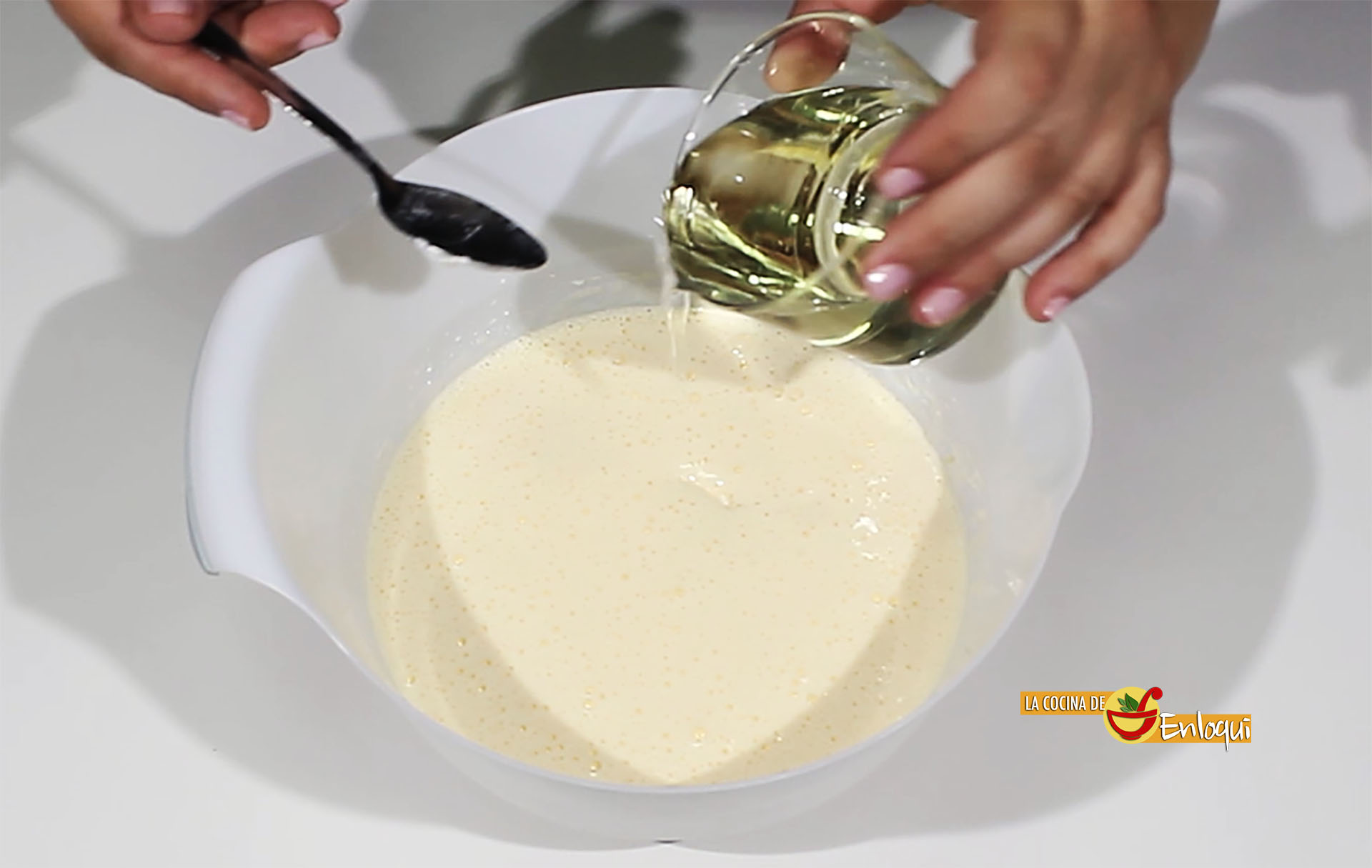 Ahora añade el aceite, el yogur y la esencia de vainilla. Sigue batiendo hasta que todos los ingredientes queden bien integrados.