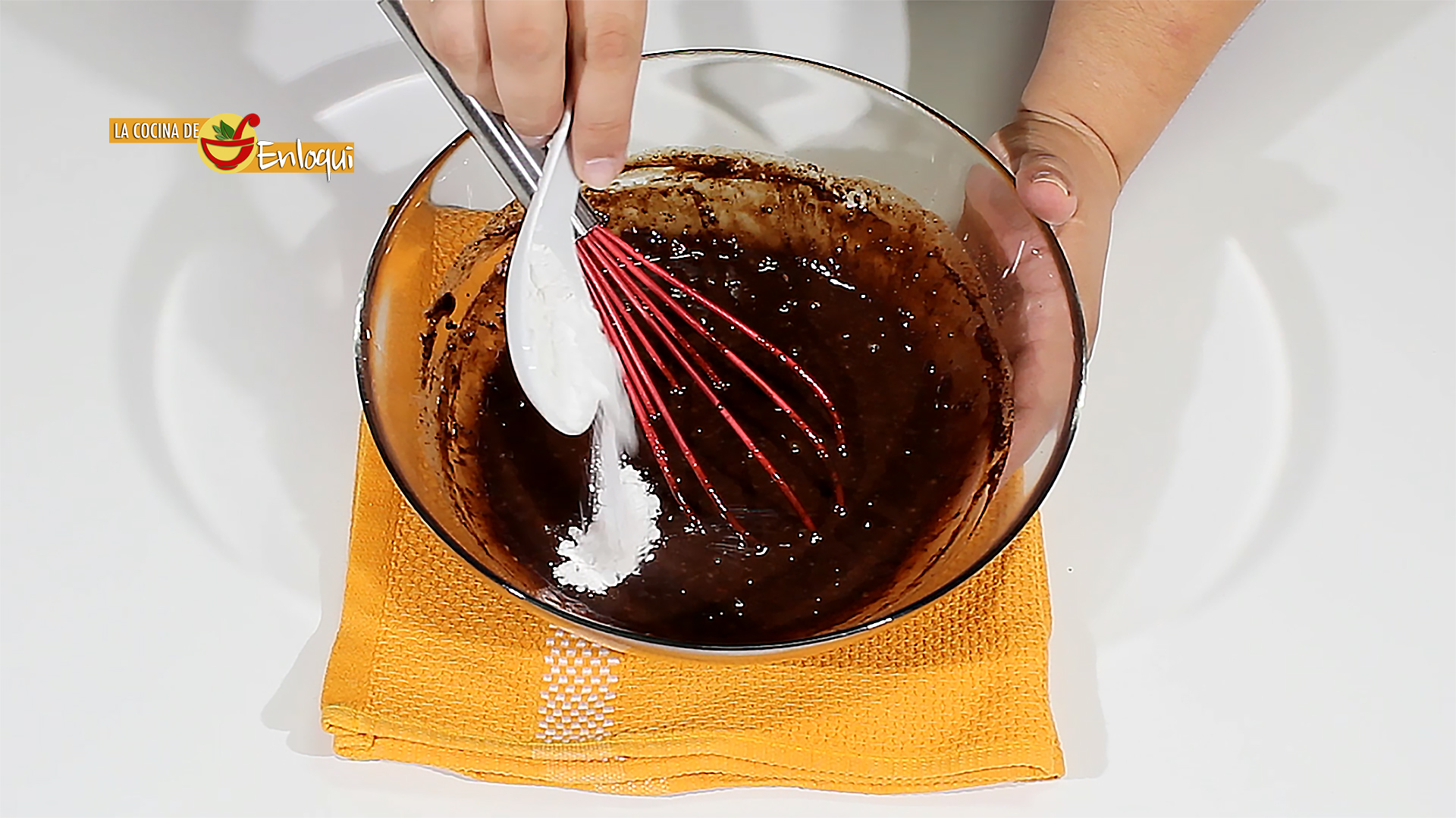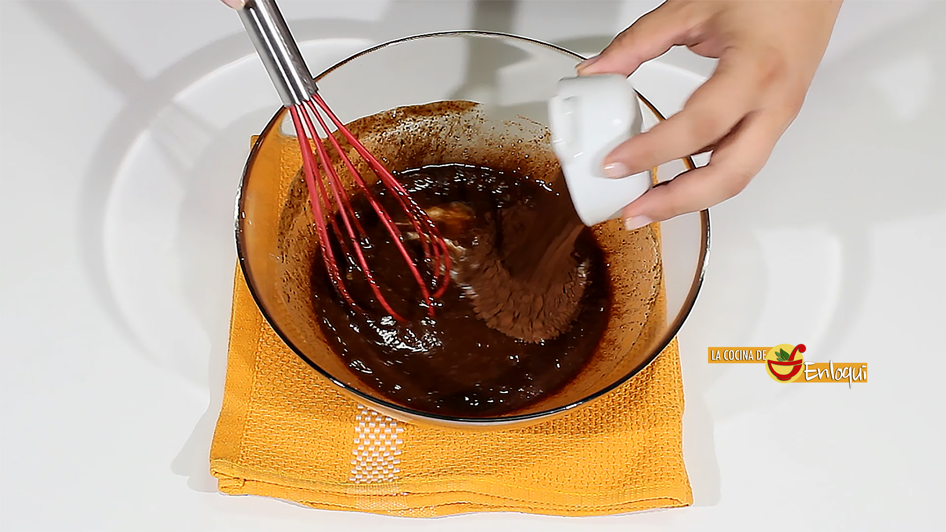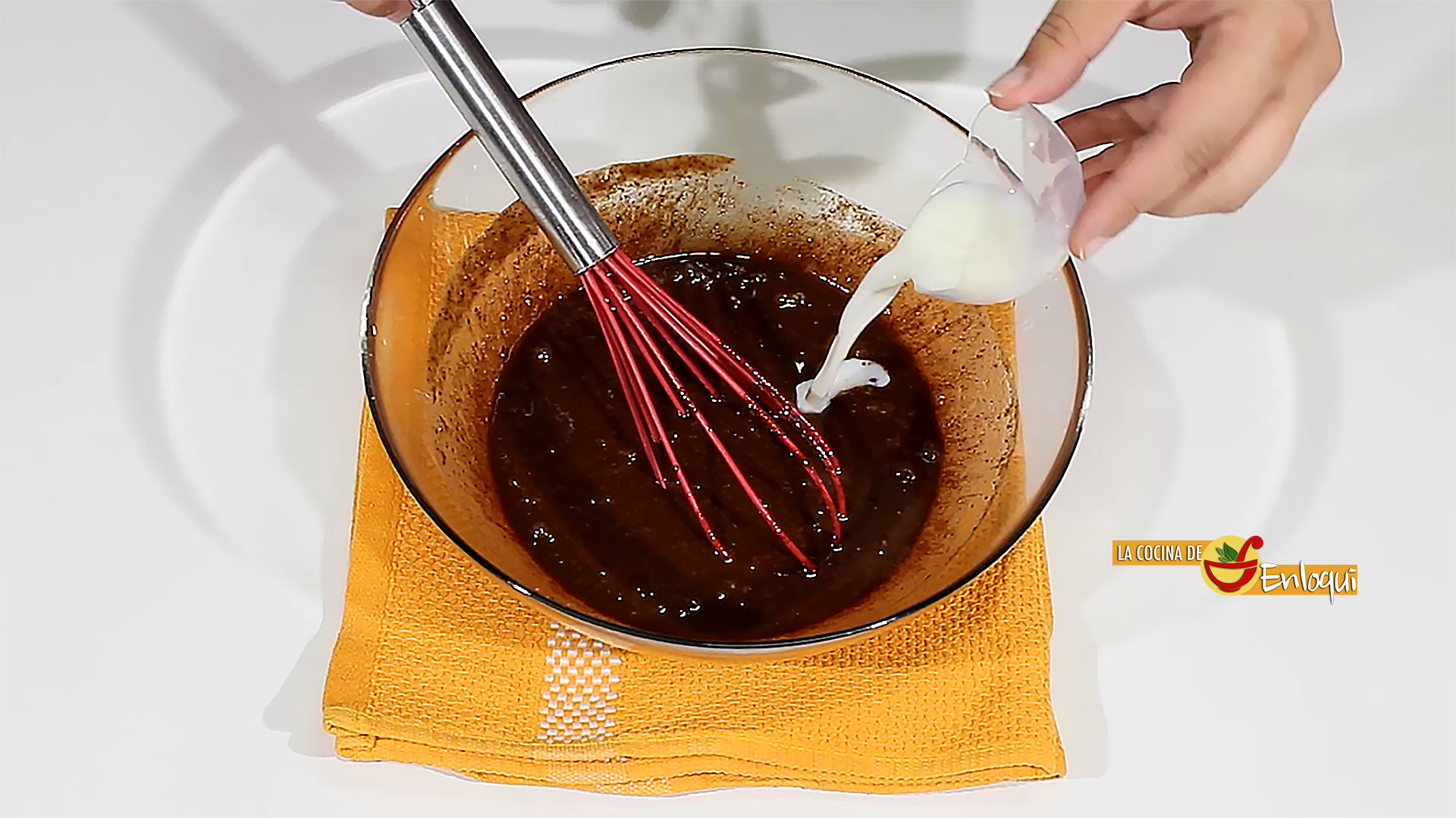 Ahora es el momento de añadir la leche, el cacao en polvo y sigue removiendo.