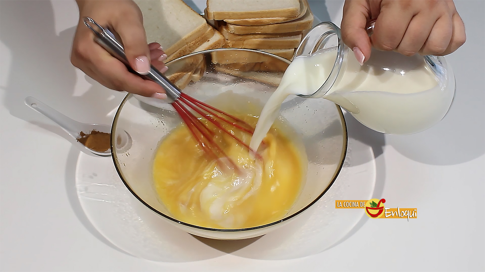 Ahora suma a la mezcla la leche y la canela molida. Sigue batiendo hasta conseguir que todos los ingredientes queden bien integrados.