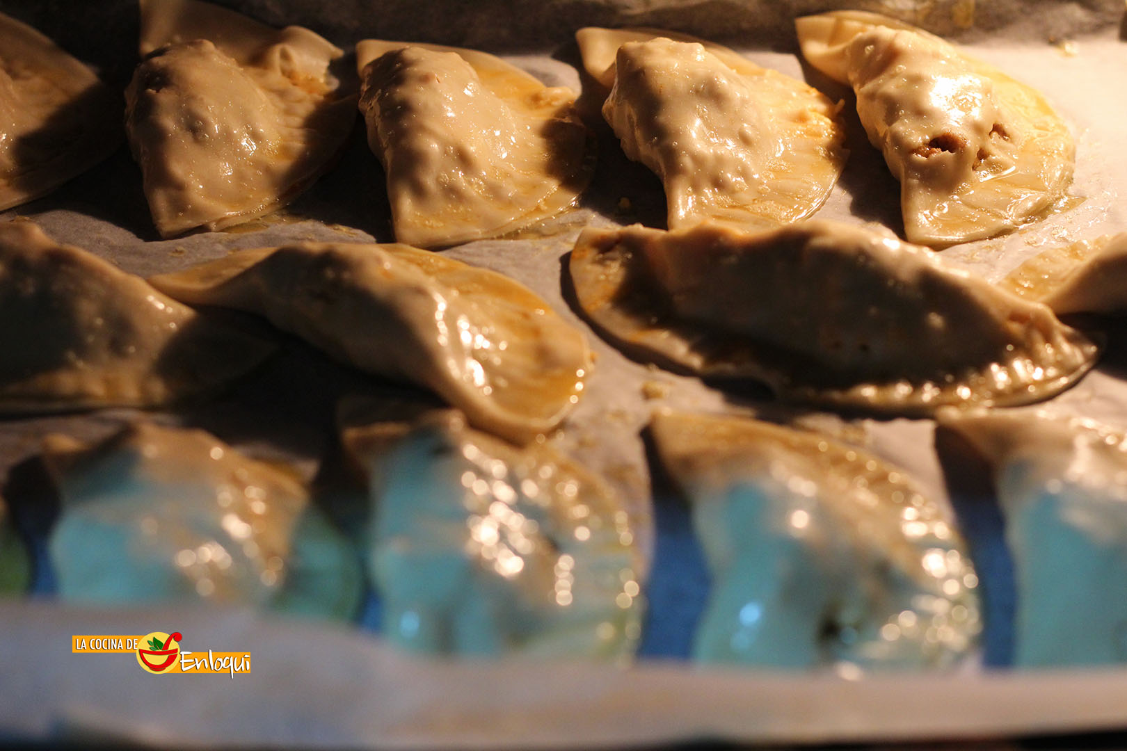 Las cerramos y sellamos bien los bordes con la ayuda de un tenedor. Las vamos colocando sobre la bandeja del horno.