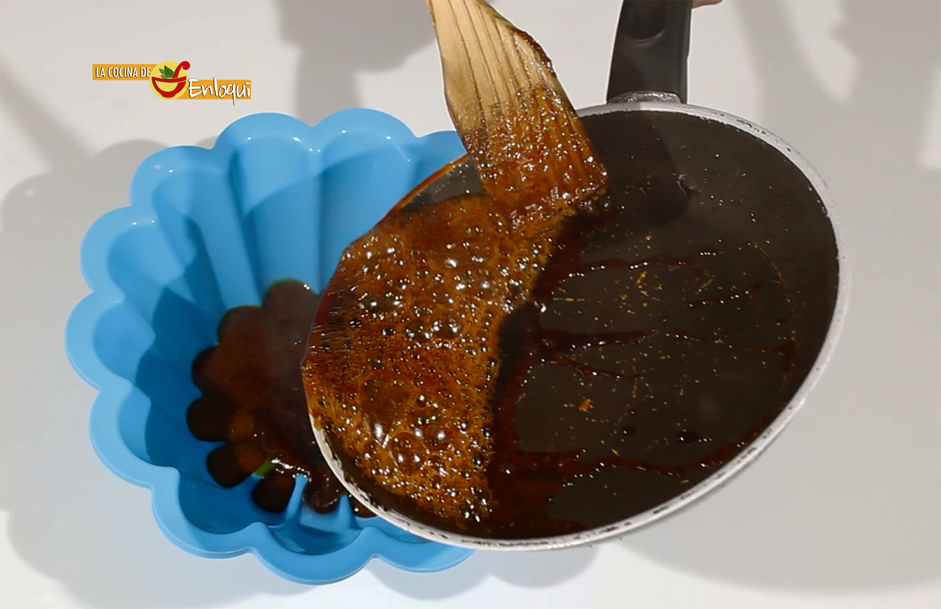 Cuando esté listo vierte el caramelo sobre el fondo del molde o flanera que vayas a emplear. Ten cuidado de no quemarte, ya que las quemaduras de caramelo son de las más peligrosas.