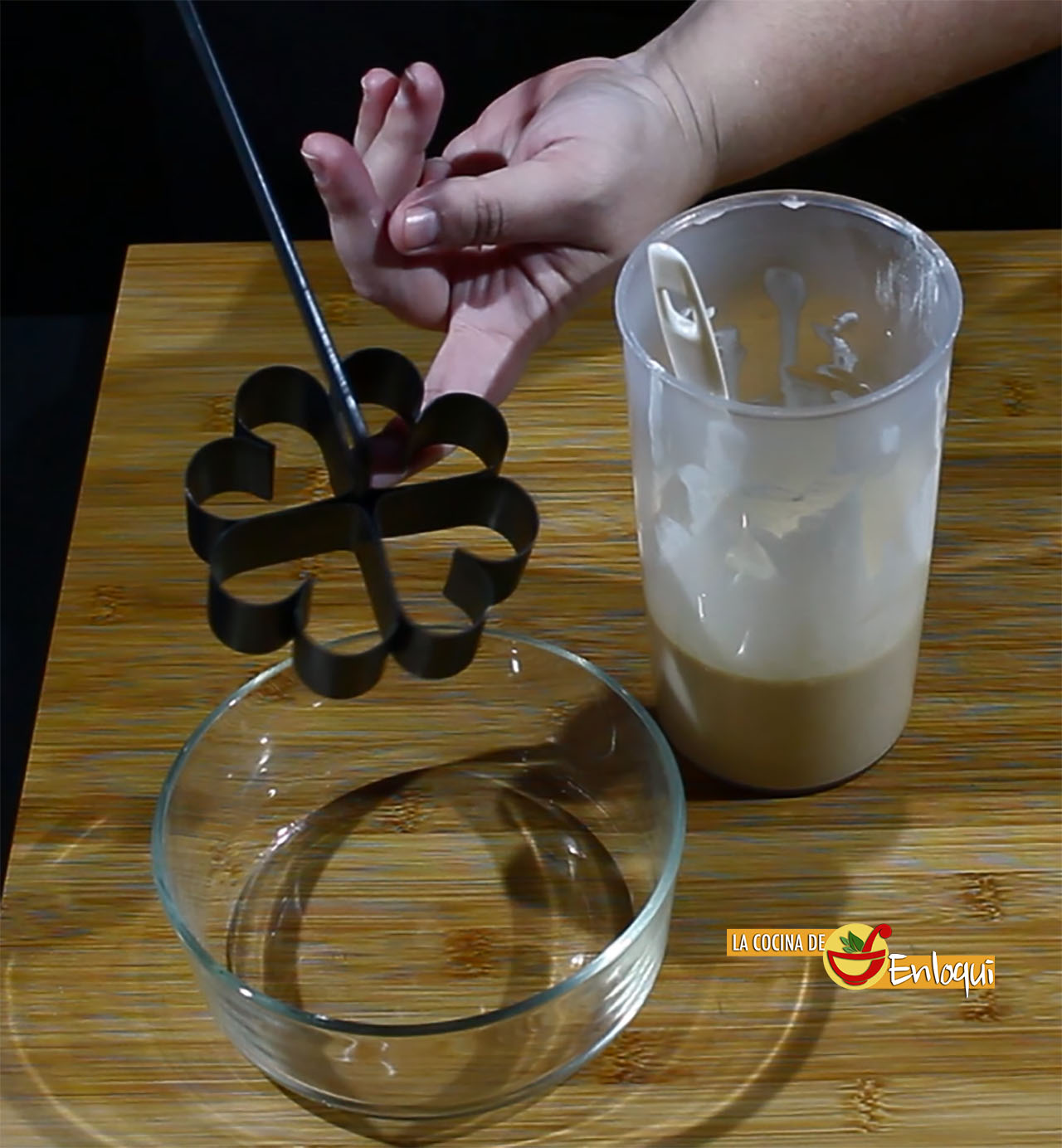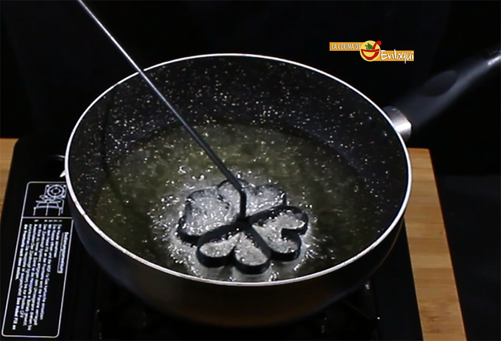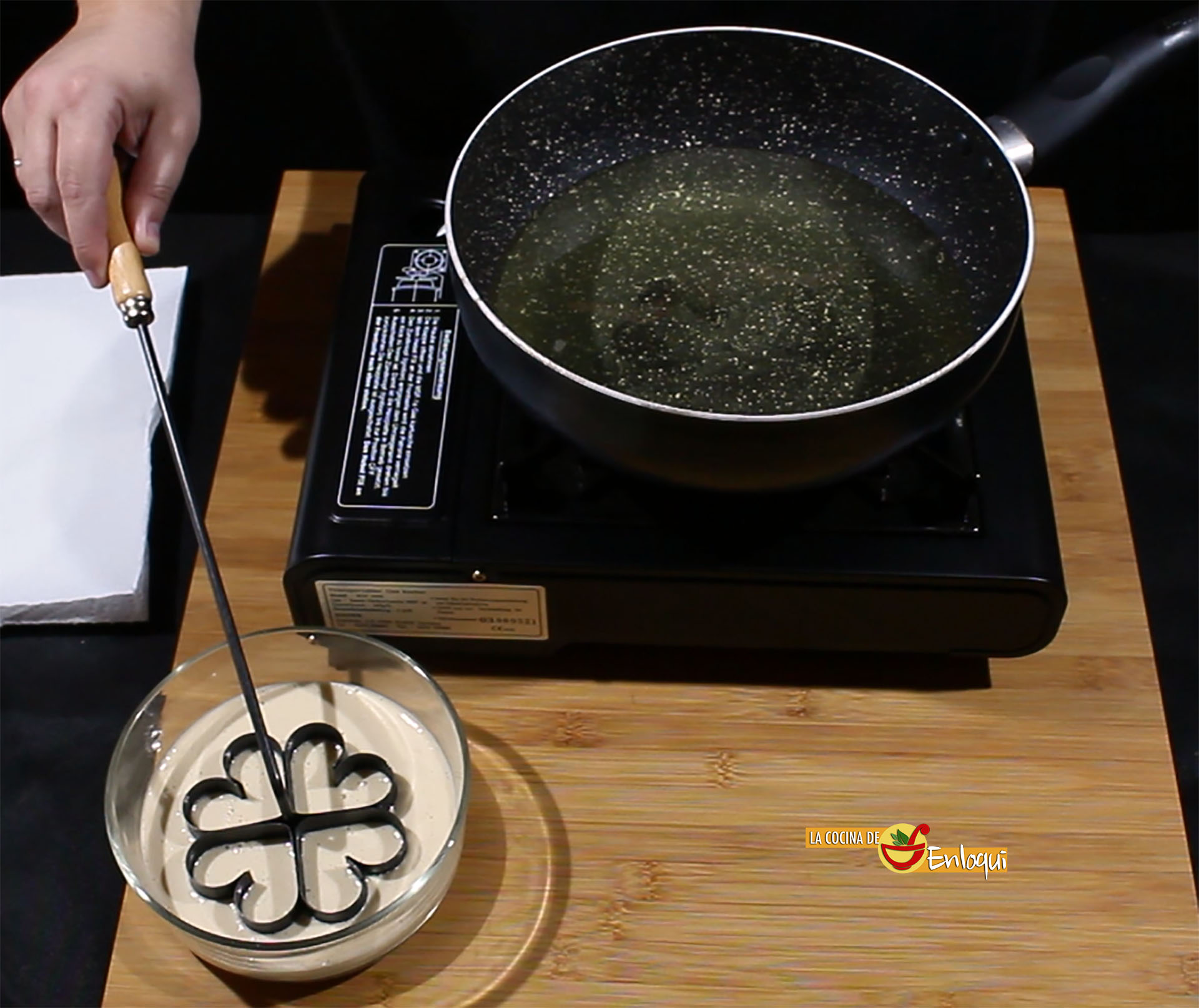 Prepara una sartén con abundante aceite de girasol y pon a calentar. Pon el molde para las flores en el interior del aceite para que se caliente.