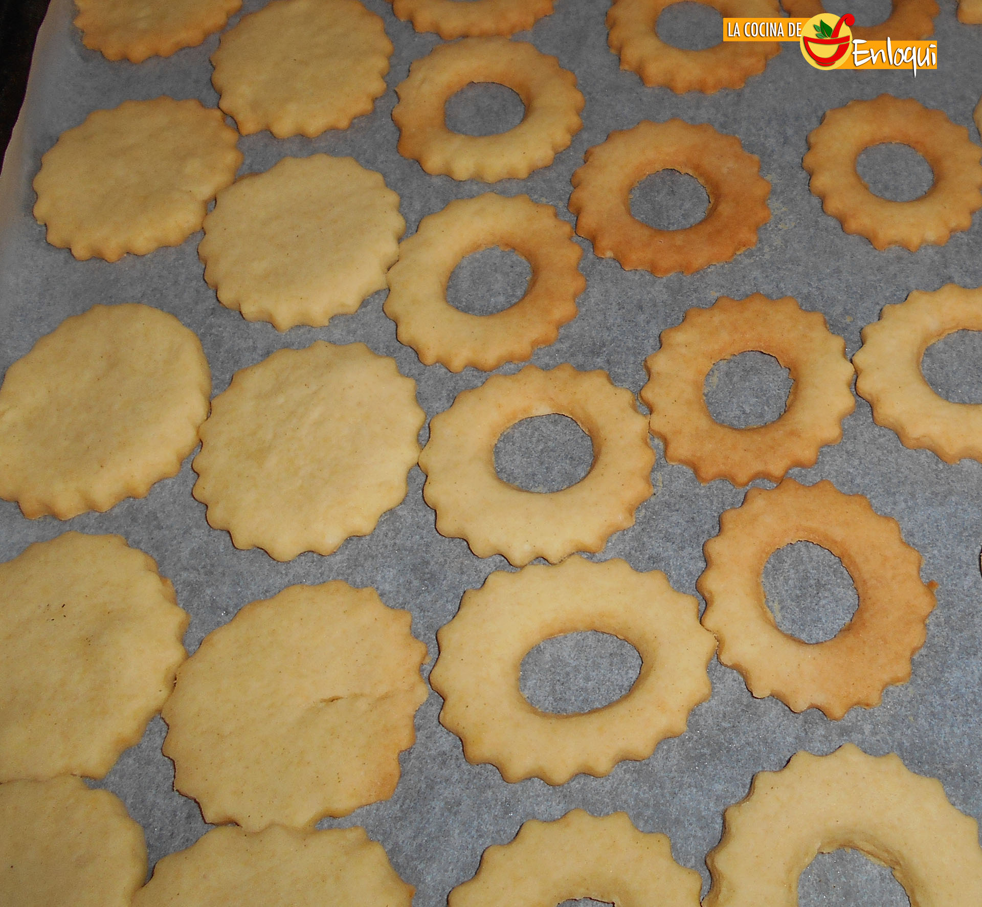 Disponemos estas galletas en la bandeja del horno, que hemos precalentado con calor arriba y abajo a 180ºC. Las horneamos unos 10 minutos, hasta que los bordes comiencen a dorarse, sacamos y dejamos enfriar.