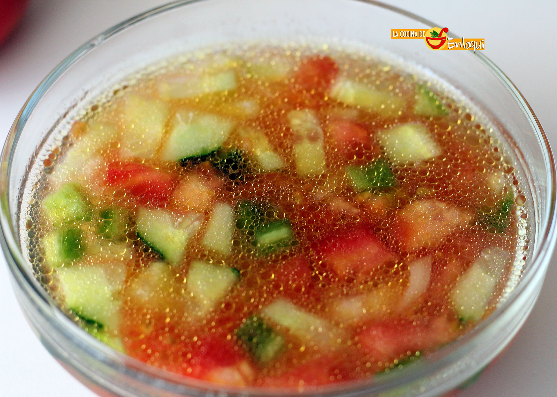 Antiguamente, nuestras abuelas, no contaban con la maquinaria que contamos hoy en día en la cocina, todo se hacía de forma más rudimentaria. Así les quedaba este Gazpacho andaluz a la antigua.
