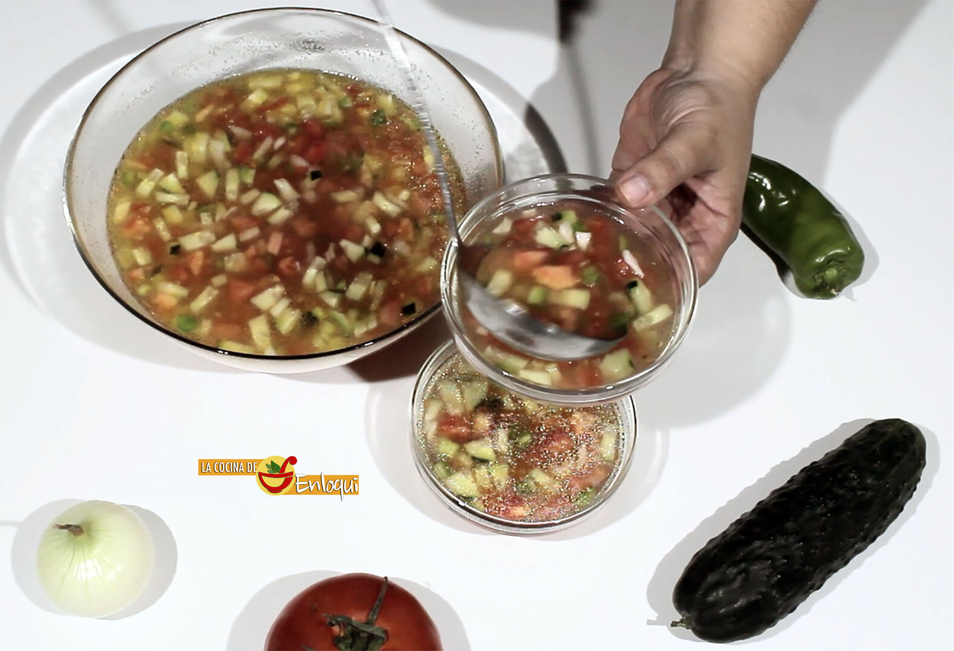 Lo que hoy vamos a preparar es el gazpacho original, el que se preparaba cuando no había batidoras, túrmix, procesadores de alimentos ni nada parecido.  A lo sumo, contaban con la ayuda de un almirez o mortero en el que machacaban los alimentos, pero en el caso de este gazpacho tampoco lo usaban. Vamos a preparar esta delicia refrescante de nuestras abuelas.