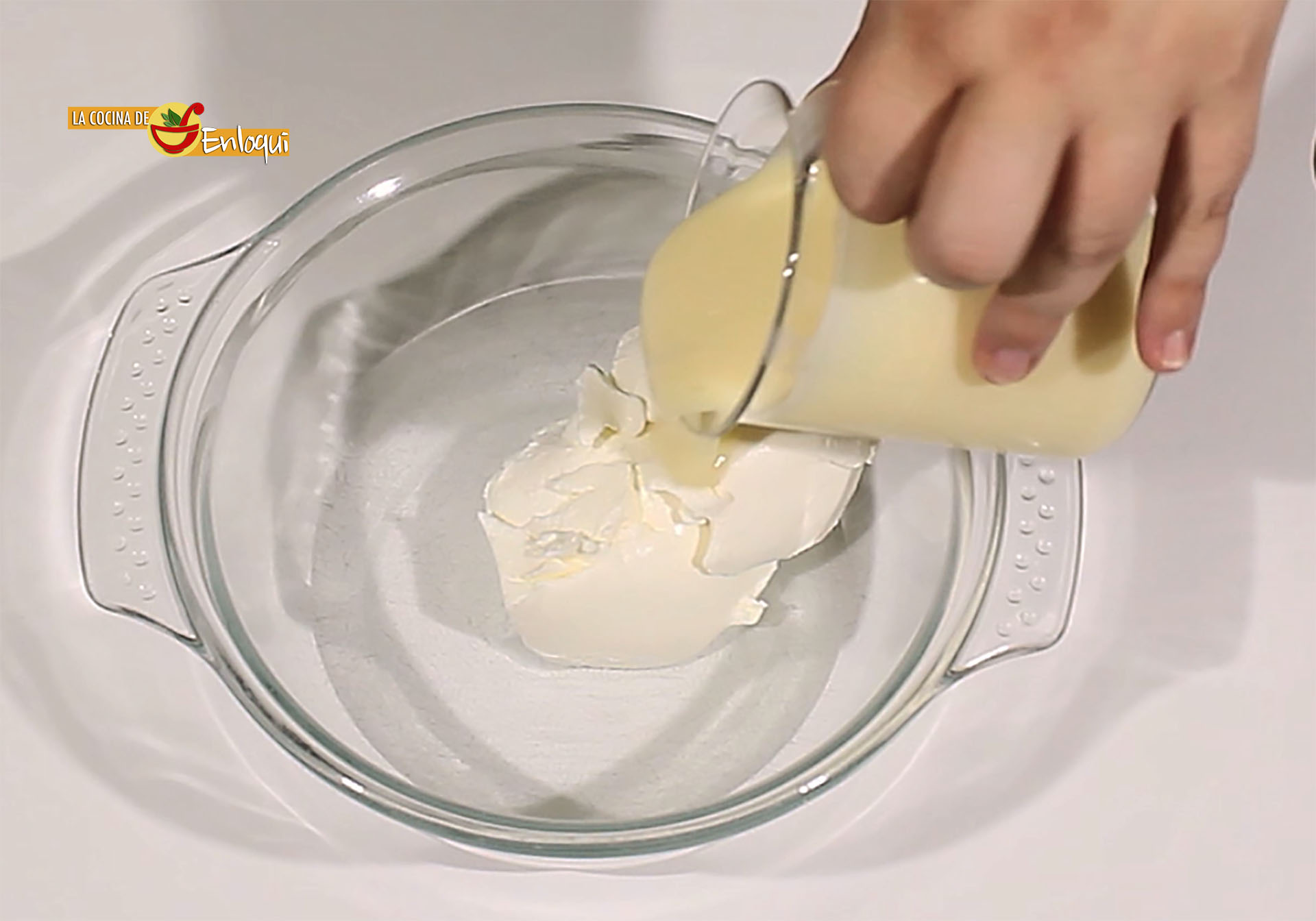 Para comenzar a preparar esta delicia de helado, lo primero que debes hacer es poner en un bol amplio el queso crema junto con la leche condensada. Bate hasta que quede todo bien mezclado y consigas una crema homogénea.