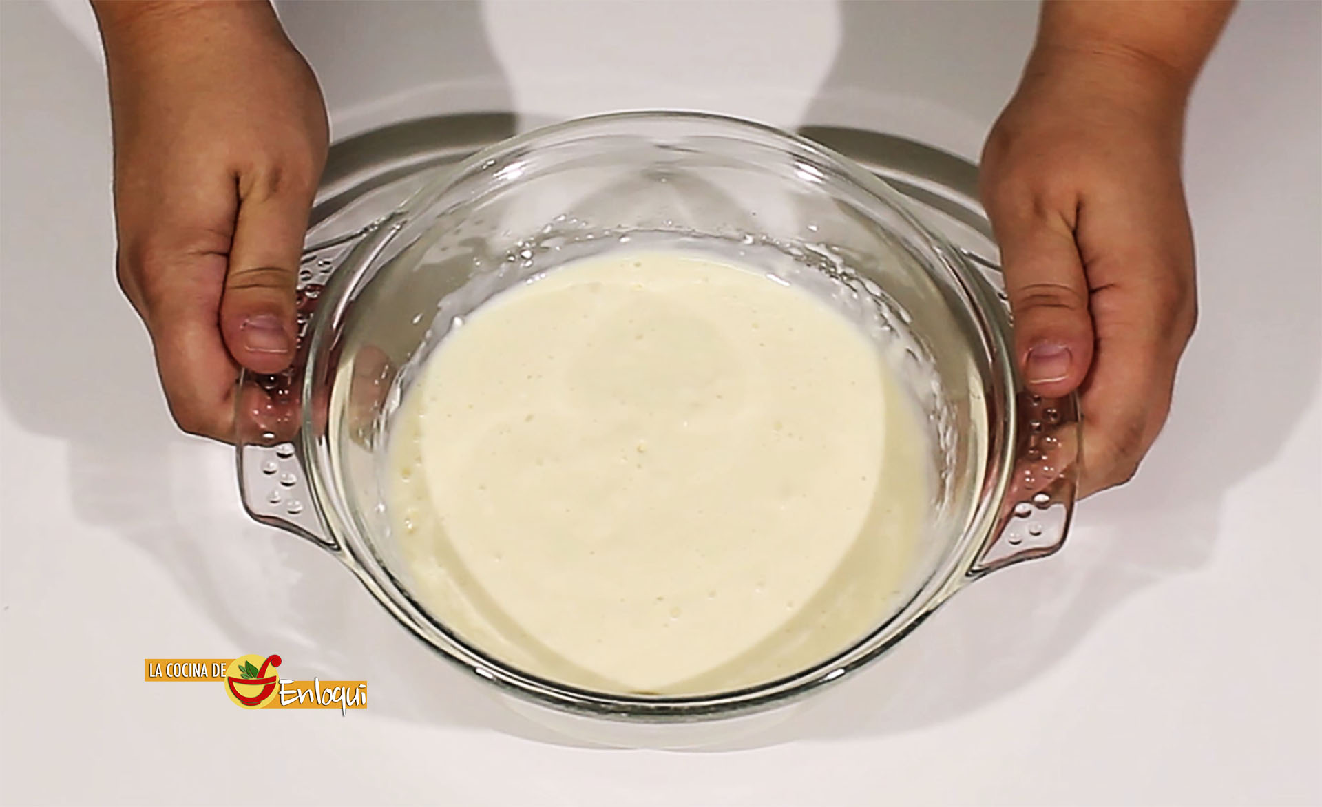 En otro recipiente monta la nata con las varillas eléctricas. Para que la nata monte con más facilidad, te recomiendo que la guardes en el congelador unos minutos antes de usar.
