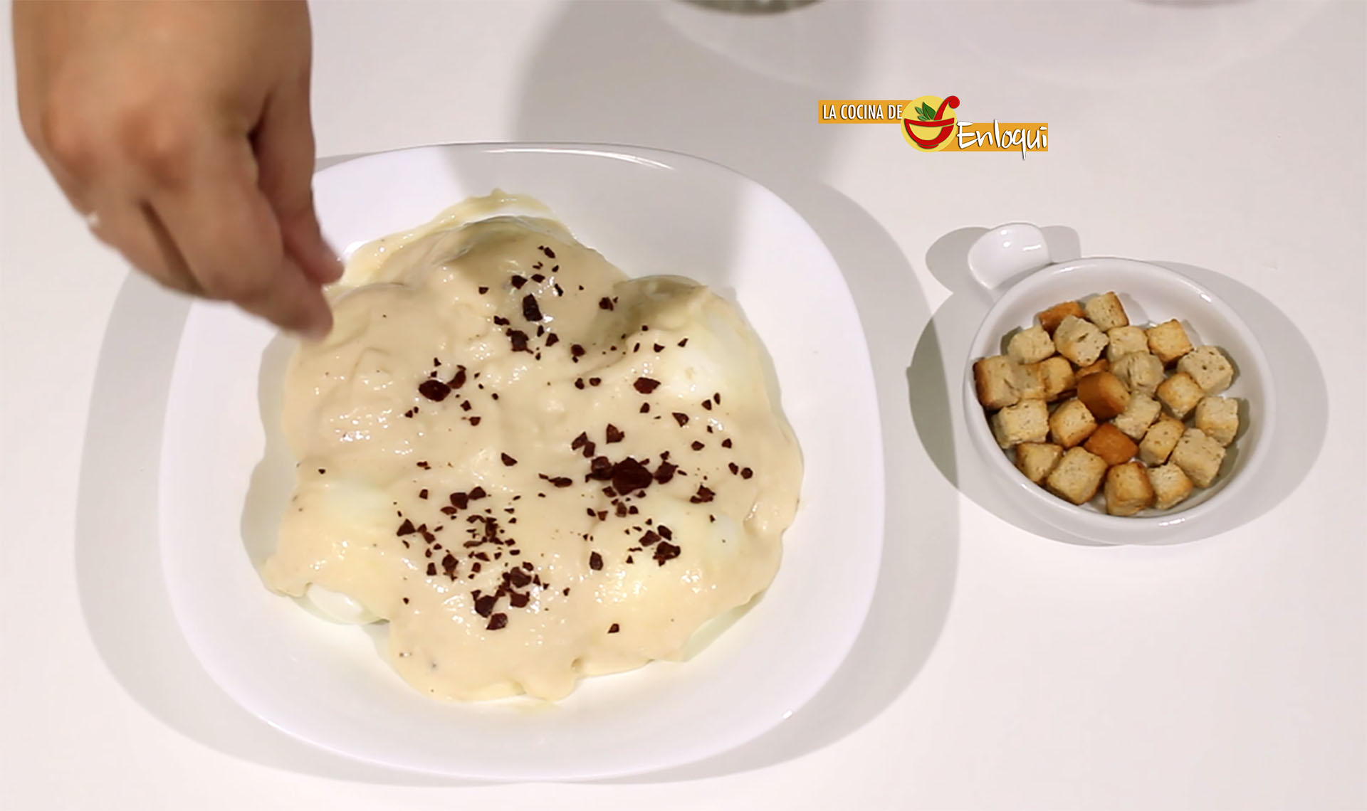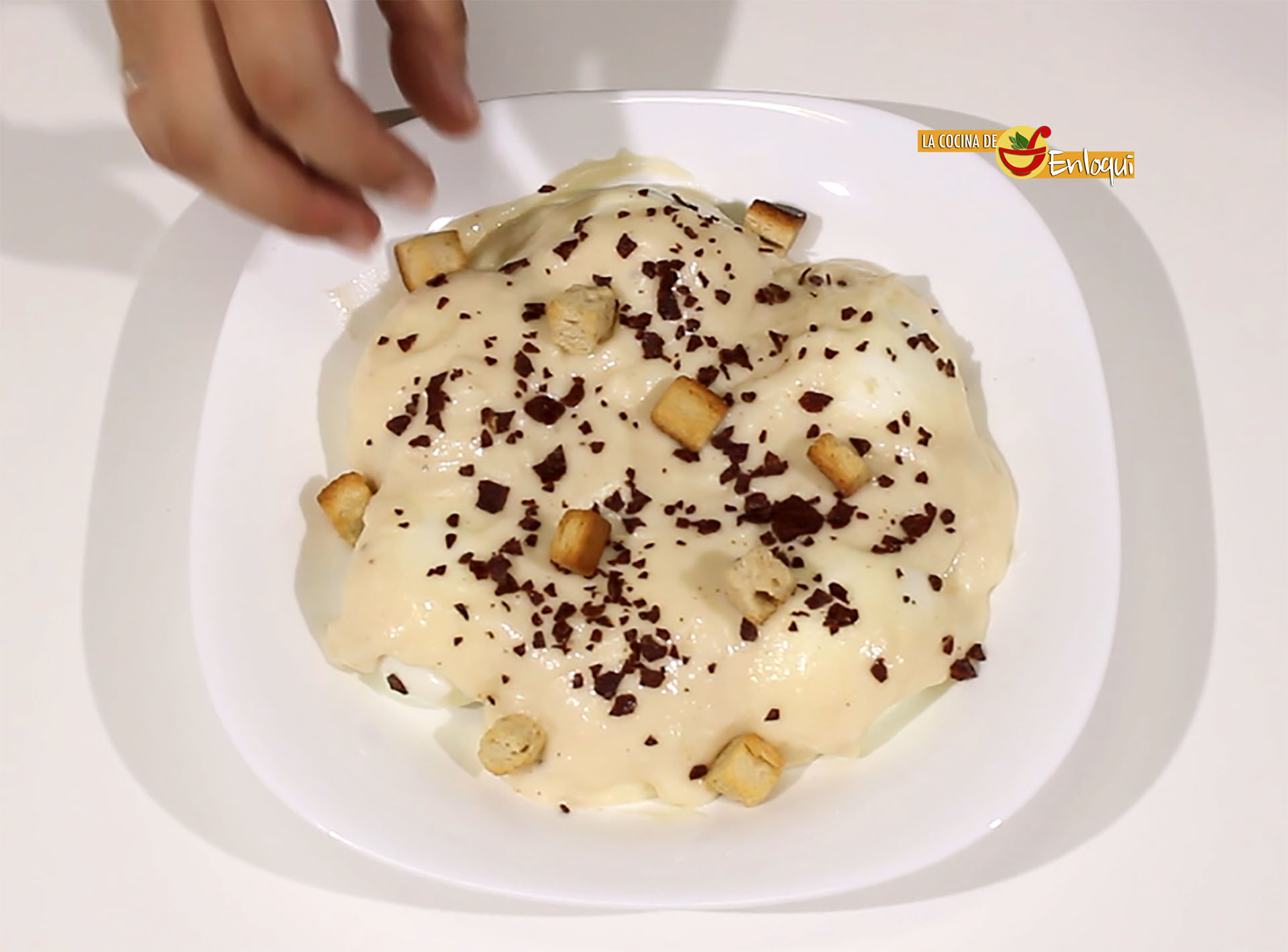 También puedes poner para completar la presentación de nuestro plato unos pequeños picatostes.