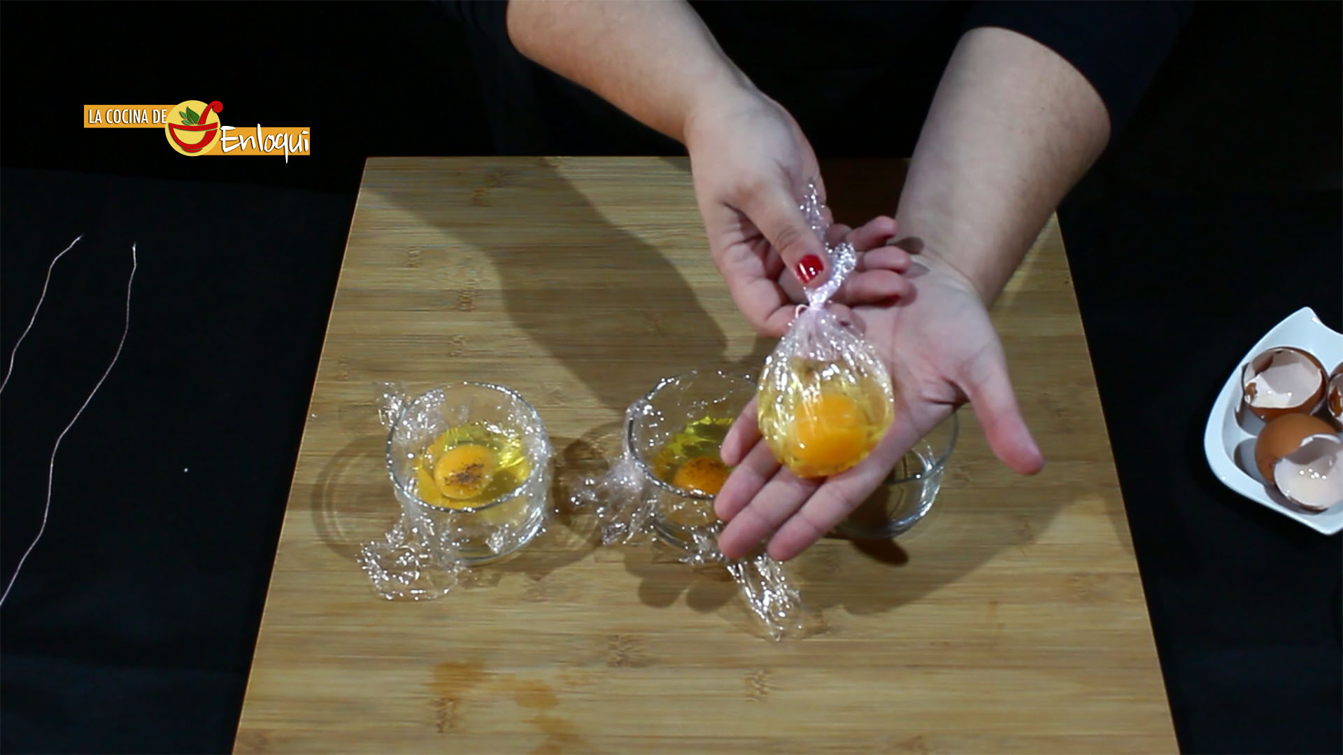 Así ya sólo nos queda separar el huevo del papel film y listo para servir o utilizar en el plato que más nos guste. Al abrir comprobamos cómo la yema ha quedado en su punto.
