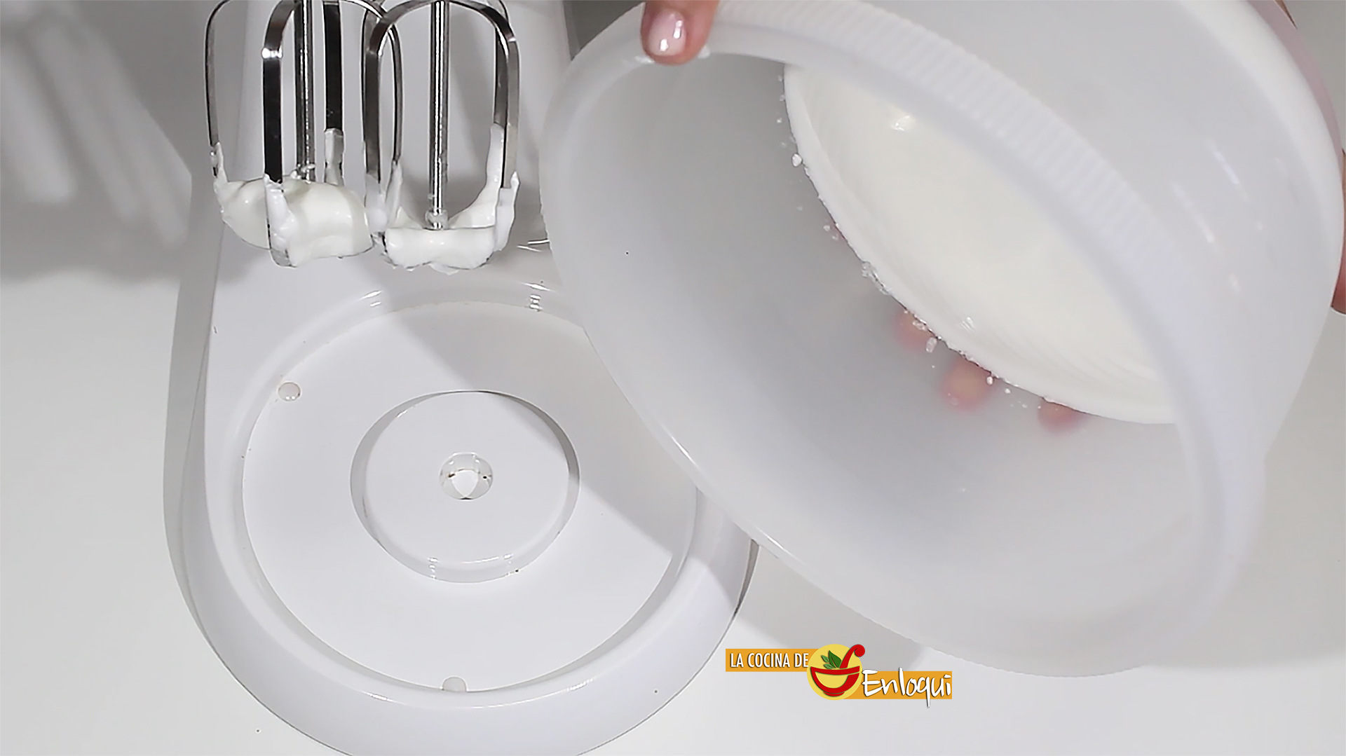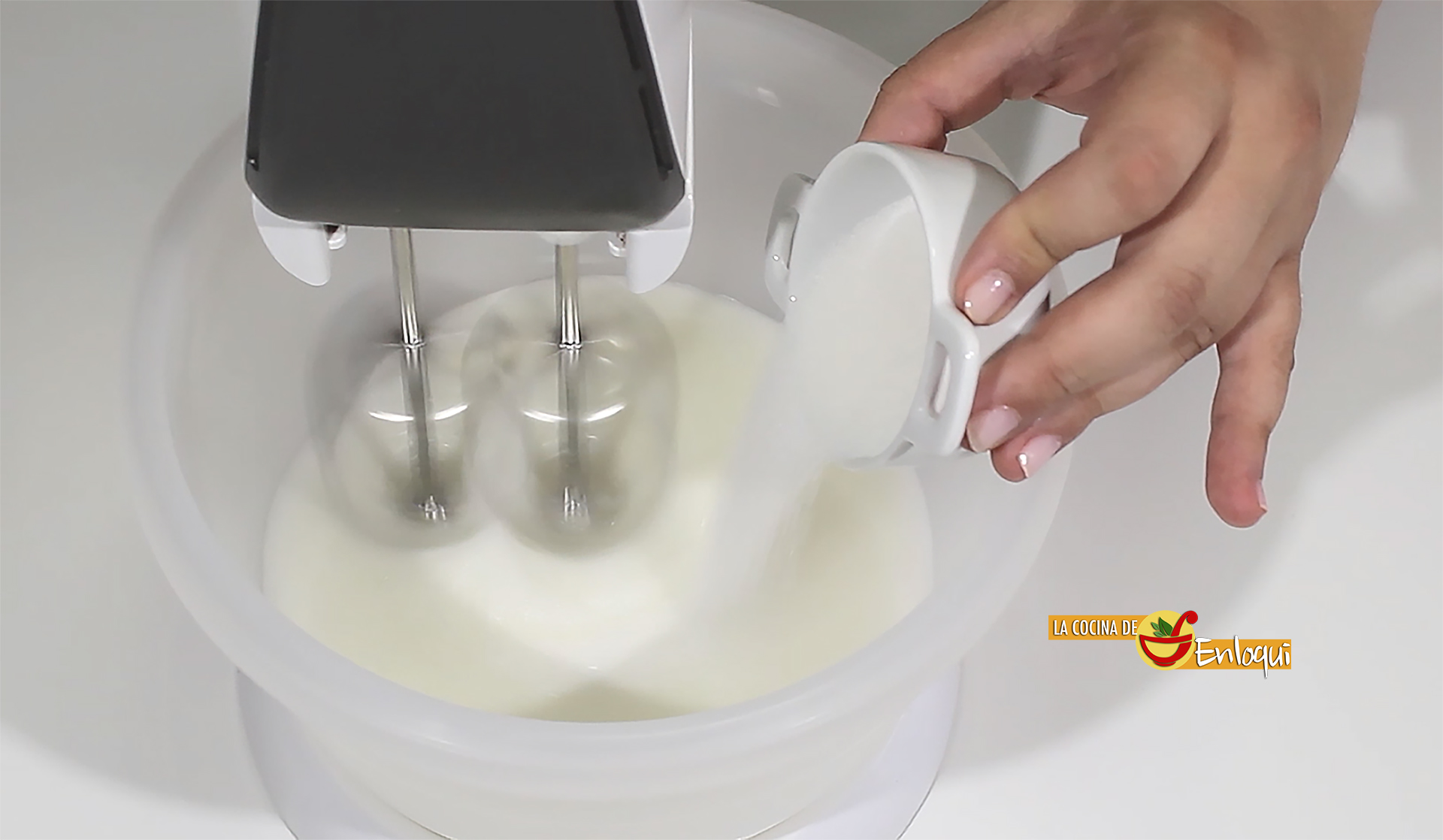 Mientras que la leche se enfría puedes preparar el merengue. Consiste en montar las claras a punto de nieve con la ayuda de las varillas eléctricas. Lo puedes hacer con las varillas manuales pero te llevará unos minutos más. Cuando las claras vayan adquiriendo volumen añade el azúcar y sigue batiendo hasta que queden completamente montadas. Sabrás que están es su punto cuando al poner el bol hacia abajo no se caigan. Este es el merengue que da nombre a nuestro postre de hoy, la leche merengada muy fácil.