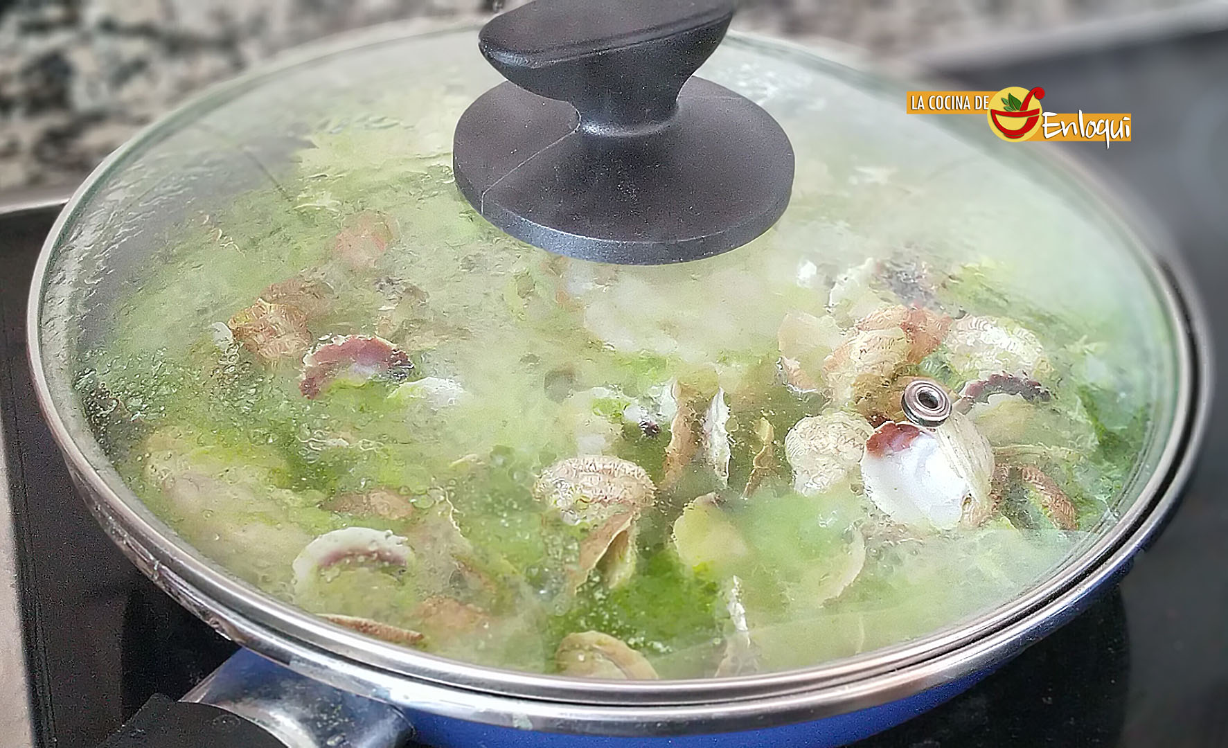 Comenzamos poniendo en un bol con agua fría con sal las almejas, para que suelten la arena que puedan tener dentro.