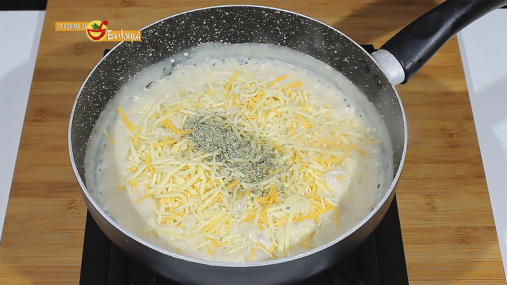 Remueve para que no se formen grumos hasta conseguir la bechamel bien ligada. Salpimenta, añade un toque de orégano y un poco de queso rallado. Integra todo y reserva.