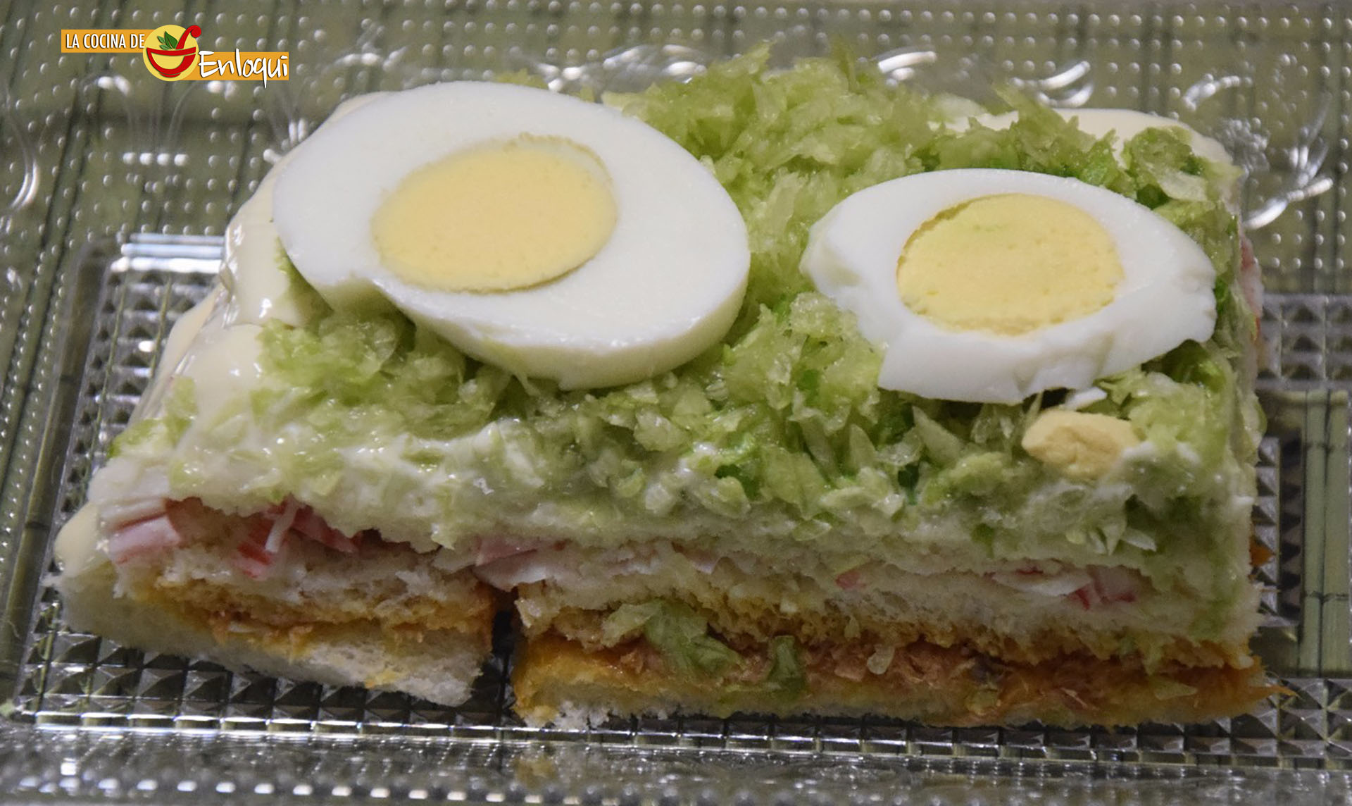Si lo prefieres, puedes decorar de forma más sencilla cubriendo con mayonesa y poniendo por encima lechuga muy picadita y huevo duro.