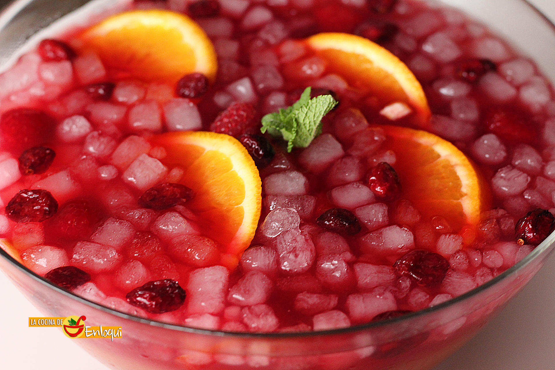 El toque final se lo darás colocando unas rodajas de naranja, unas frambuesas y unos arándanos rojos desecados. Puedes dar un contraste de color poniendo unas hojas de hierbabuena.