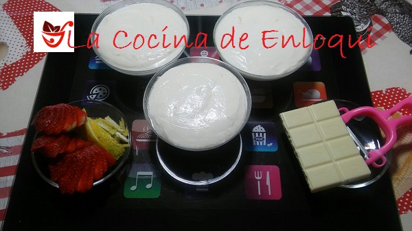 Cuando vayas a servir decora como prefieras, te ofrecemos estas dos opciones. Por un lado puedes servir en boles individuales con virutas de chocolate blanco, raspadura de limón y fresas.