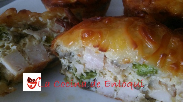 Muffins de espárragos, setas y pavo