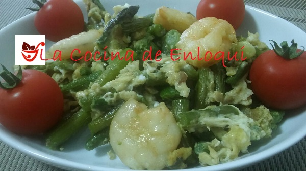 Revuelto de ajetes con espárragos trigueros