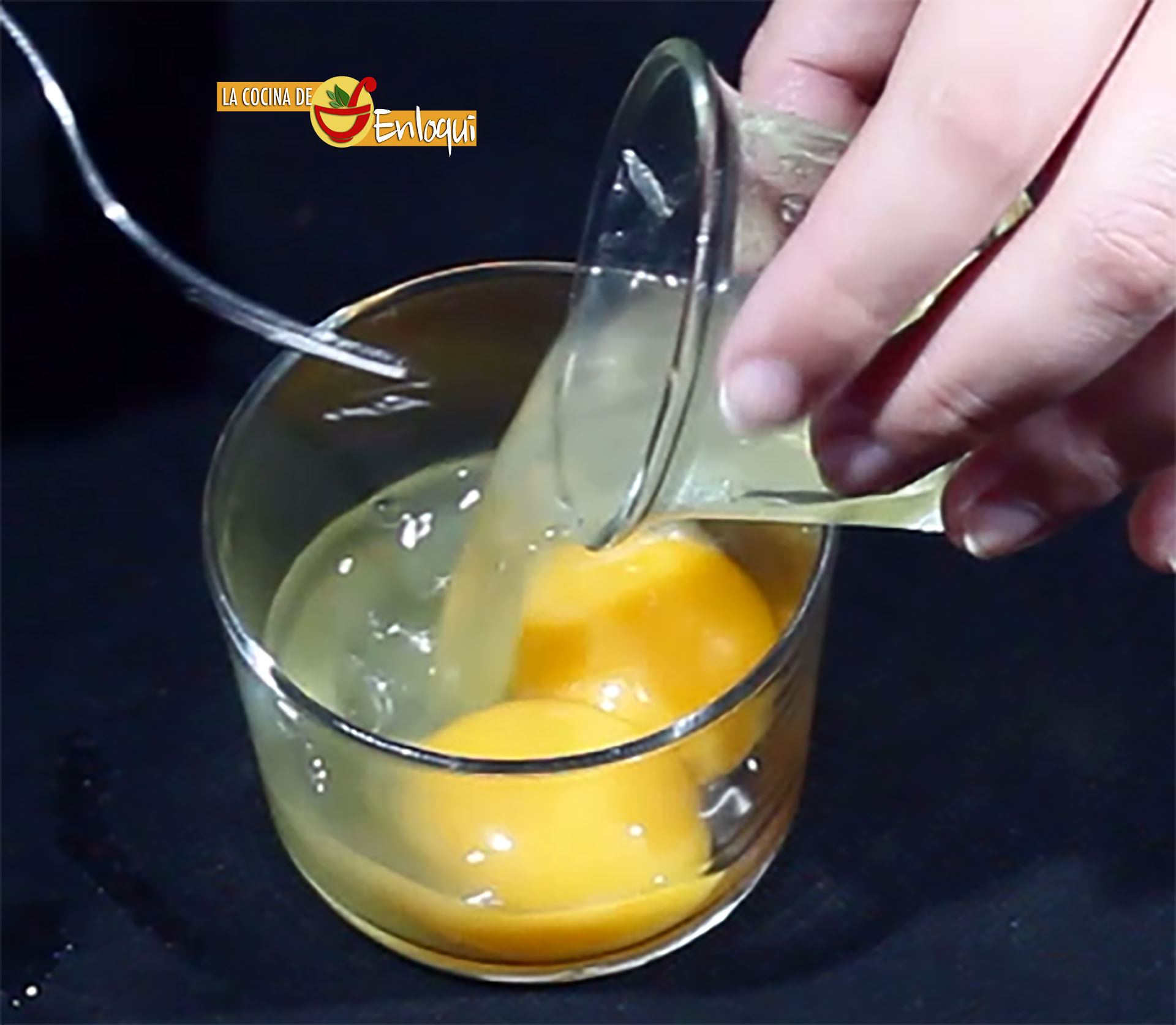 Mientras separa las claras de las yemas. Reserva las claras y añade al caldo dos minutos antes de que hagan los 20 minutos, con esos dos minutos será suficiente para que cuajen las claras en la sopa.