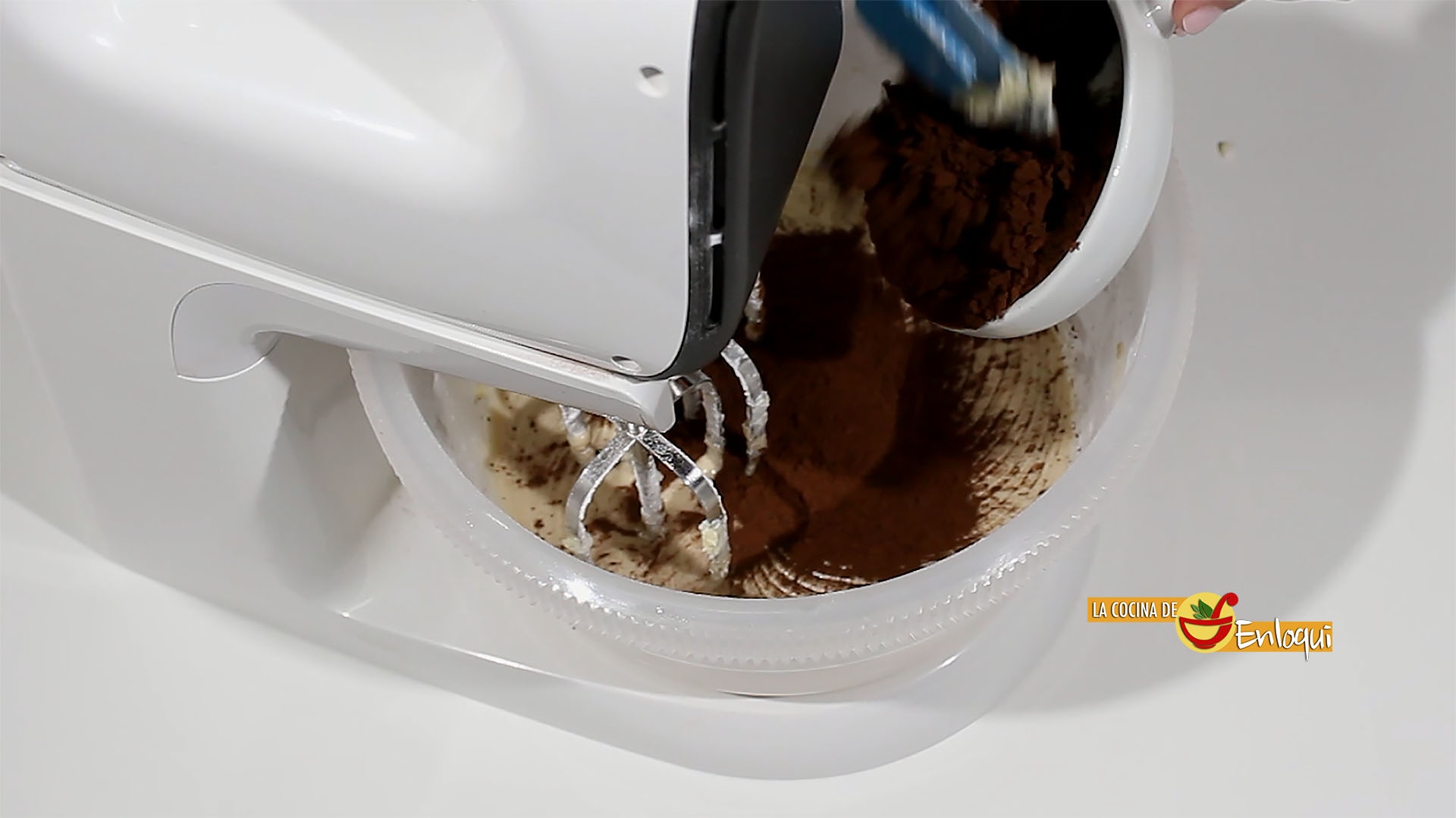 Entonces es el momento de añadir la leche condensada y el cacao en polvo. Bate hasta que la masa quede homogénea.