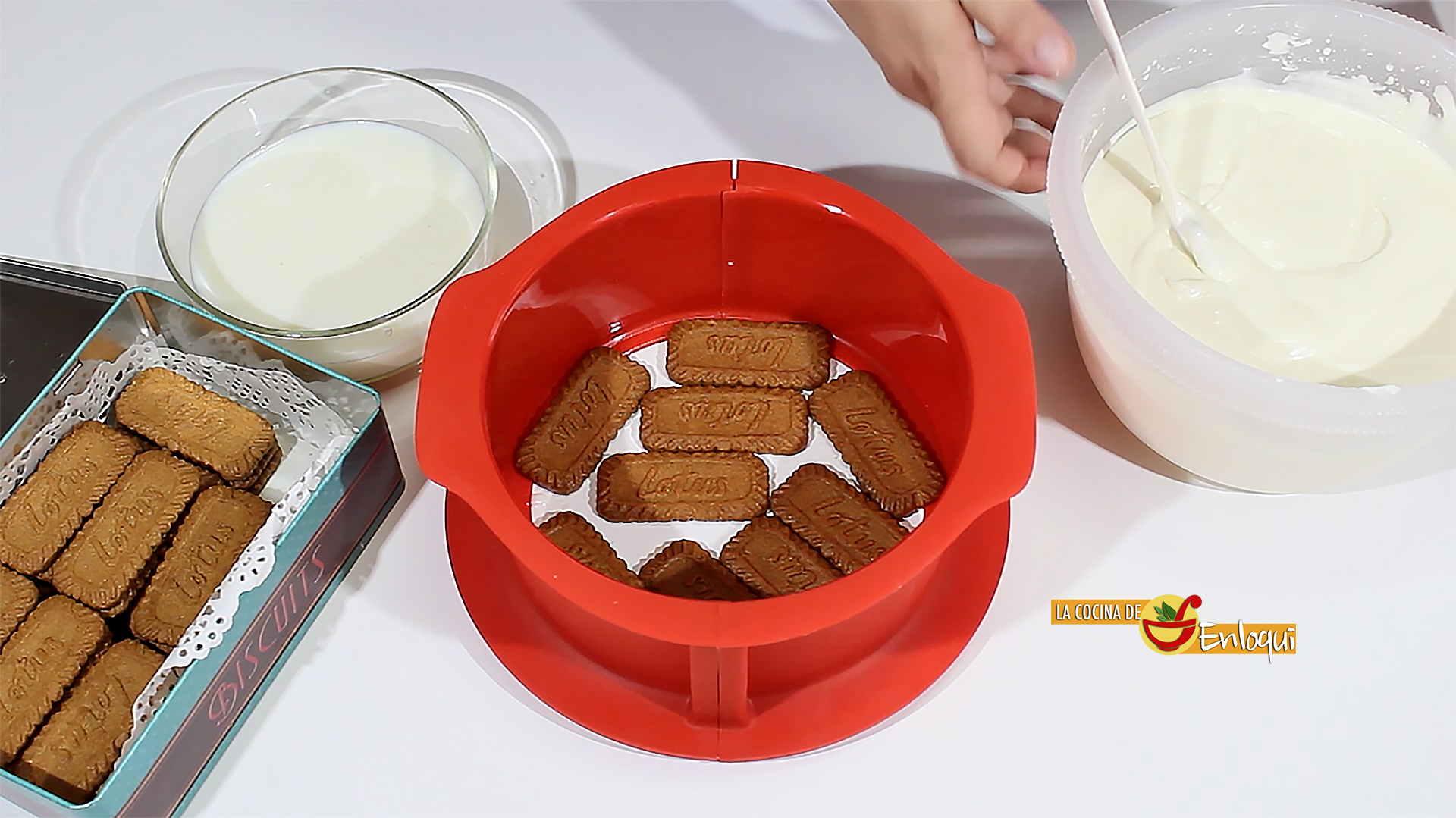 Vamos a usar galletas Lotus Biscoff, también se conocen como Speculoos. Son unas galletas caramelizadas muy típicas en la época Navideña en Bélgica, Holanda y esa zona Europea. Nos van a aportar un sabor muy particular y quedan suaves y deliciosas en nuestra tarta.