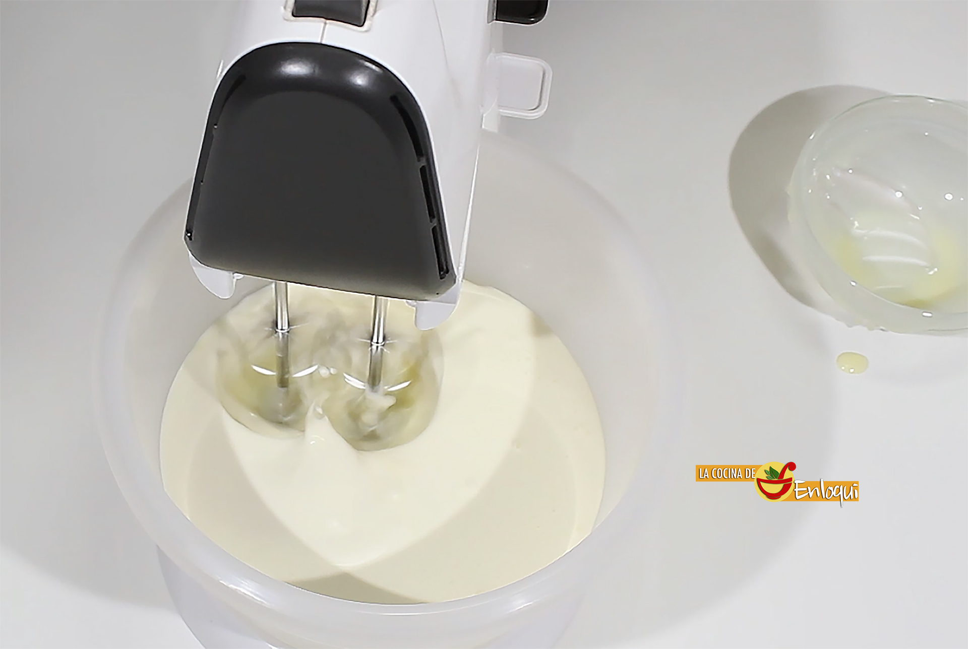 En el bol de la batidora coloca la nata para montar y la leche condensada. Bate con las varillas eléctricas durante un par de minutos.