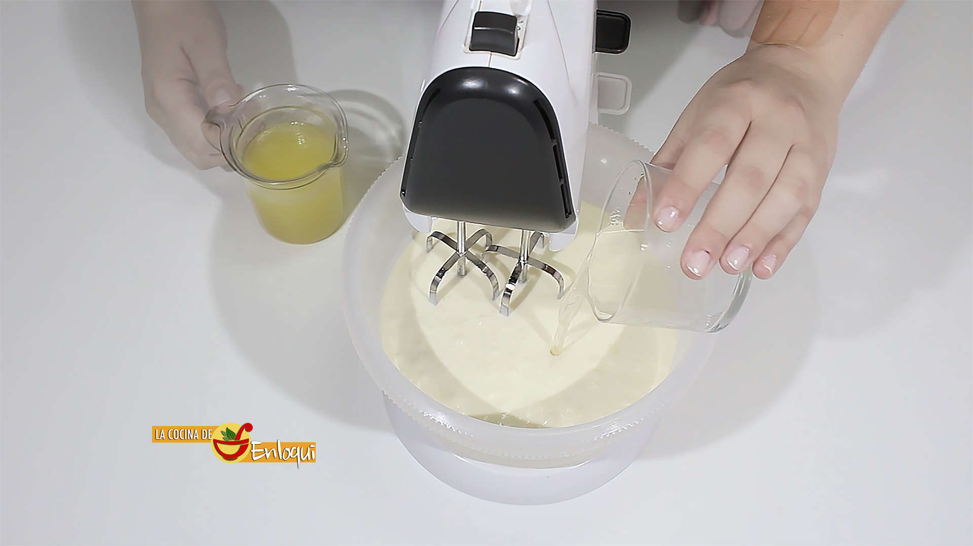 A continuación añade el zumo de limón y la gelatina que has reservado antes, después de calentar en el microondas.