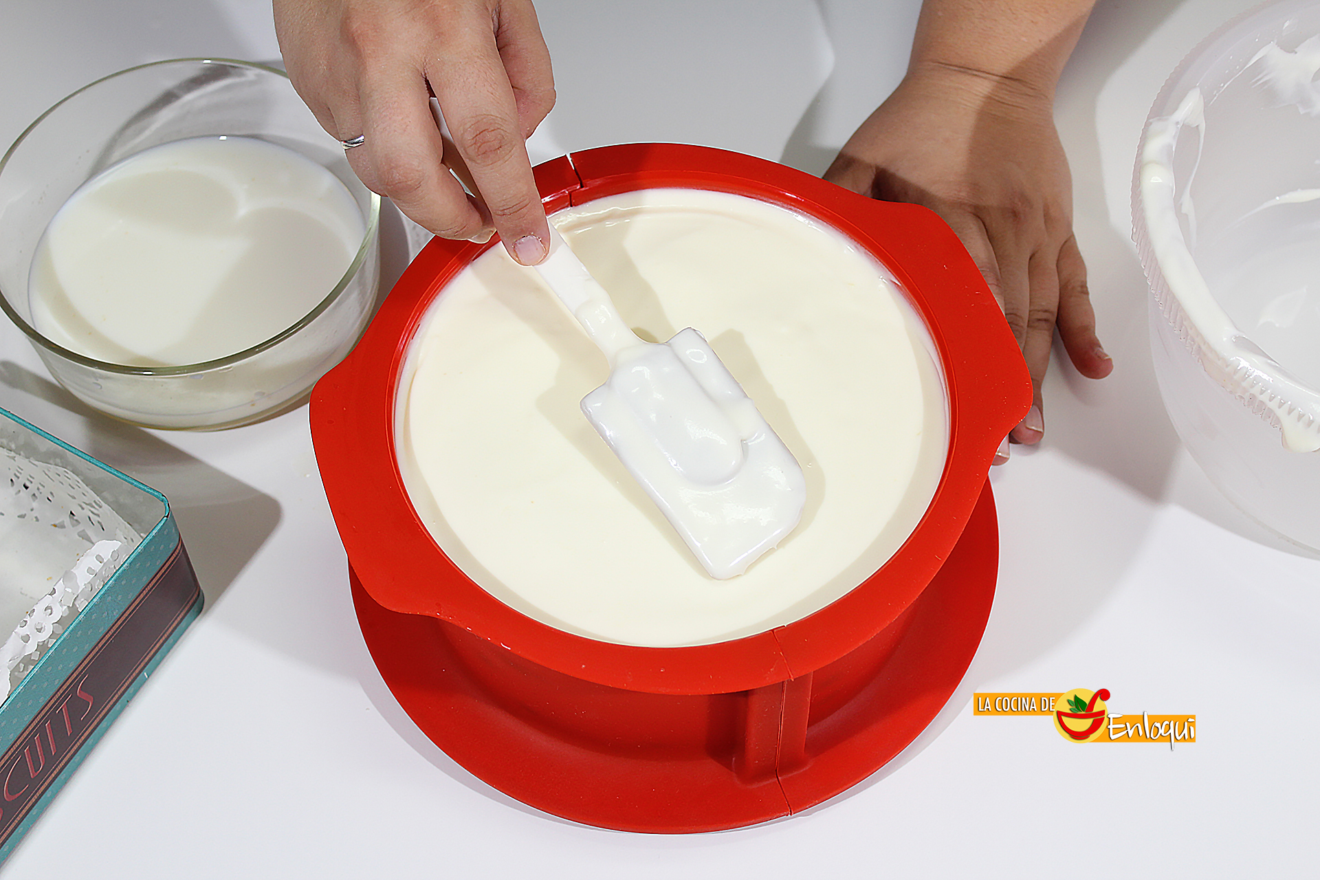 Lleva a la nevera a enfriar por un mínimo de 4 horas. Si la dejas de un día para otro mucho mejor.