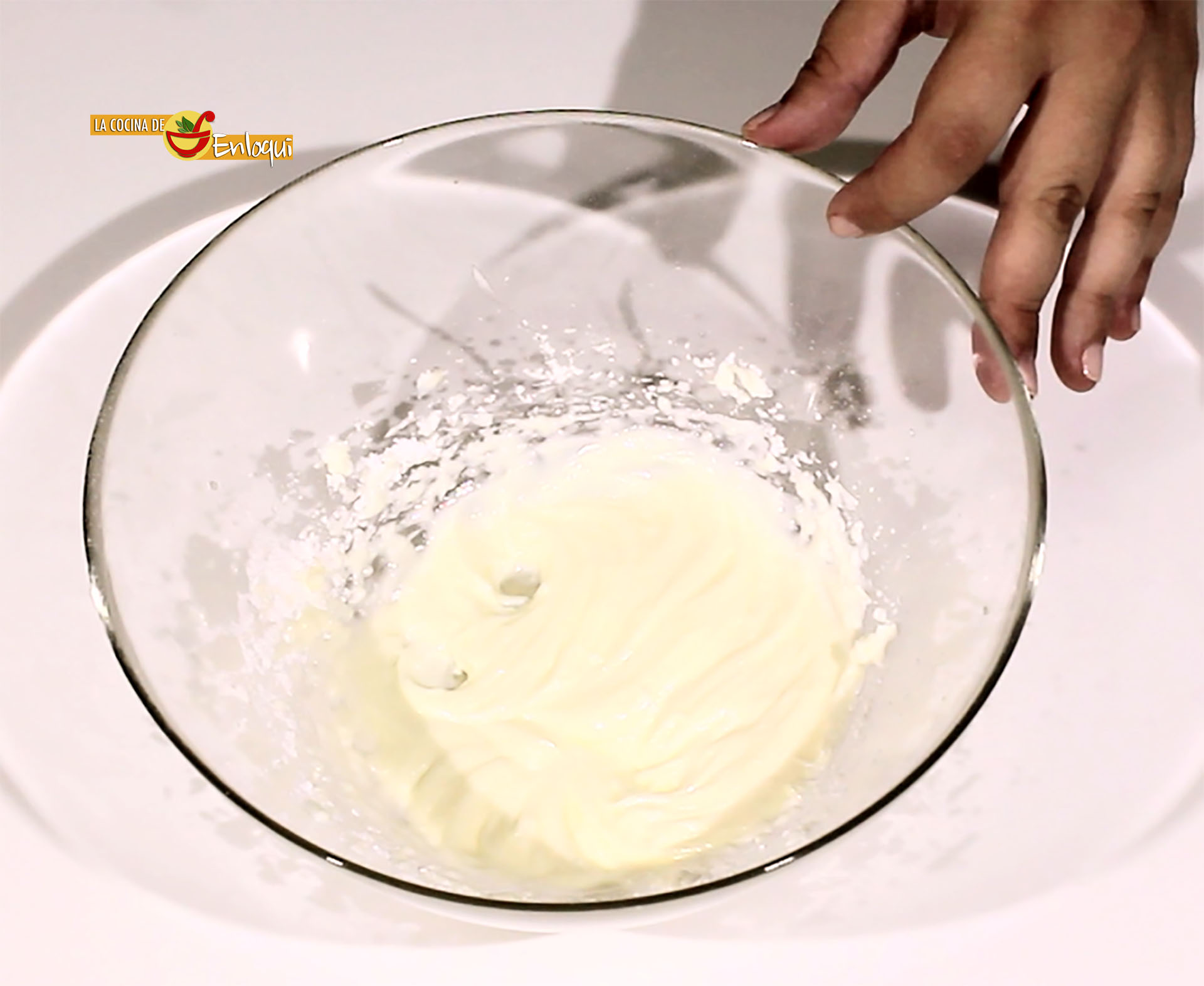 En otro bol mezcla el queso crema con el azúcar glass. Cuando esté bien mezclado añade el zumo de limón y la leche y sigue mezclando. Ahora es el momento de añadir la nata montada. Con la ayuda de una espátula mezcla con movimientos envolventes para que no pierda demasiado volumen y quede una crema con cuerpo.