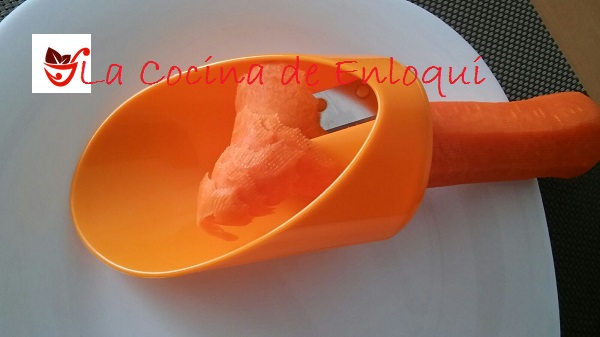 Vamos a comenzar conociendo este pelador de doble cuchilla. Por un lado tiene una cuchilla para pelar vegetales, nos sirve para casi todos (patatas, zanahorias, calabacín, judías verdes…). La segunda cuchilla nos sirve para cortar en juliana, a mi me encanta usarlo para hacer espagueti de calabacín.
