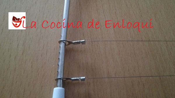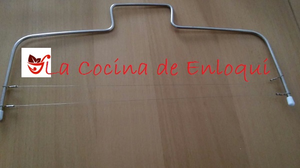 En primer lugar vamos a ver una SIERRA PARA BIZCOCHOS, también conocida como lira. Con esta sierra, que lleva dos hilos metálicos que actúan a modo de cuchilla, podemos abrir nuestros bizcochos de forma perfecta, ajustamos el ancho del corte, cambiando la posición de esos hilos, y así, podemos obtener resultados como el del bizcocho de la imagen, que podemos rellenar de lo que más nos guste o bien, para elaborar una deliciosa tarta. (Bizcocho relleno de trufa de chocolate con café)