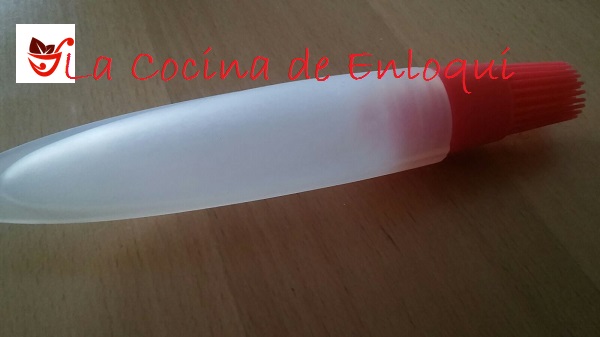 Ahora vamos a ver un práctico PINCEL DE SILICONA DE REPOSTERÍA.  Todos conocemos los clásicos pinceles de silicona de repostería, con los que pintamos con huevo batido o mantequilla, galletas o bollitos o para calar bizcochos. La Particularidad de este pincel es que colocamos en su interior la mantequilla, el huevo batido, o el almíbar con el que calar los bizcochos. Al deslizar por la superficie se irá aplicando el contenido directamente.
